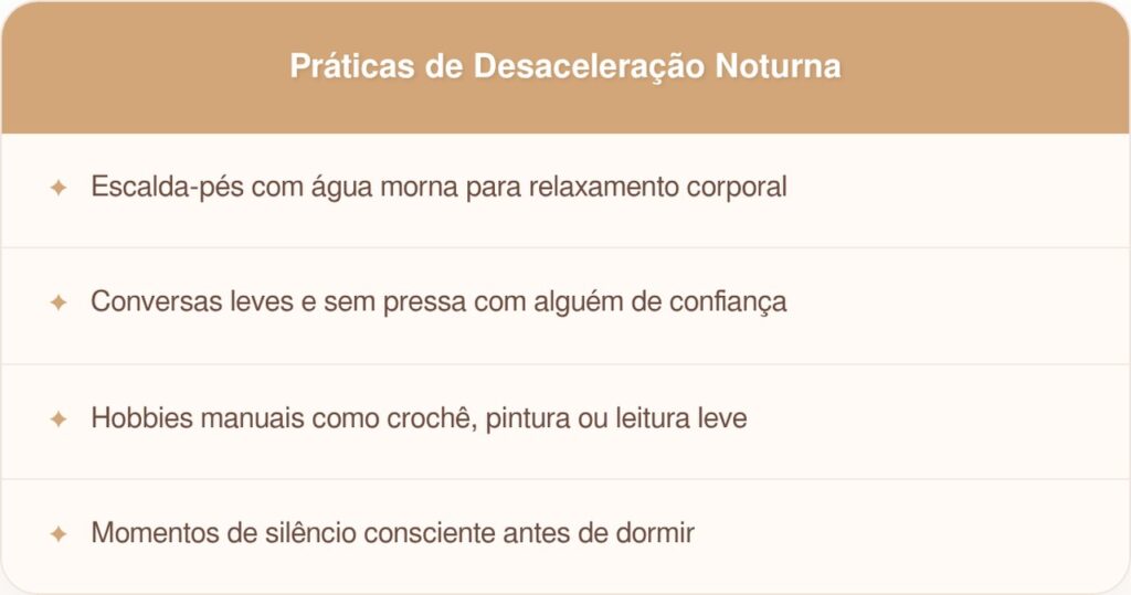 Substituir o impulso alimentar noturno não significa repressão, mas sim oferecer ao cérebro outras formas de conforto e recompensa que não envolvam comida. Esses substitutos ajudam a criar novas rotas de prazer e relaxamento, reduzindo a associação automática entre emoção e alimentação.