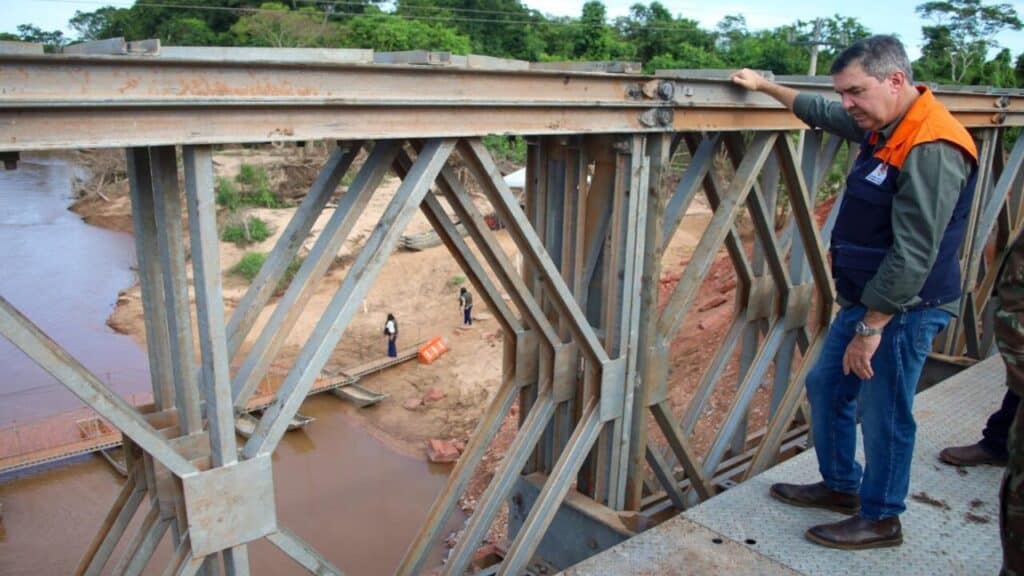 Enquanto a solução definitiva não fica pronta, uma ponte metálica provisória foi instalada pelo Exército Brasileiro. A estrutura conta com apoio financeiro do Estado e já permite a retomada do fluxo na rodovia.