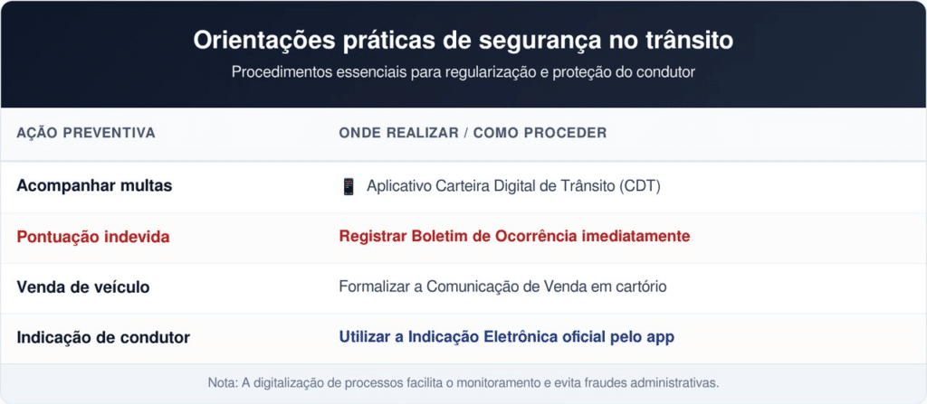Para evitar ser surpreendido por multas que você não cometeu, é essencial utilizar as ferramentas digitais disponíveis. O acompanhamento preventivo ajuda a identificar erros do órgão de trânsito ou tentativas de terceiros de utilizar seus dados de forma fraudulenta em 2026.