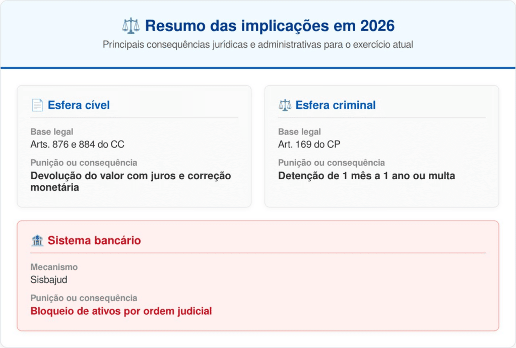 A legislação brasileira é enfática ao proibir o enriquecimento sem causa. Segundo o Código Civil, qualquer pessoa que receba o que não lhe é devido fica obrigada a restituir. Em 2026, a transparência das transações digitais torna impossível alegar desconhecimento sobre a origem de um crédito na conta corrente.