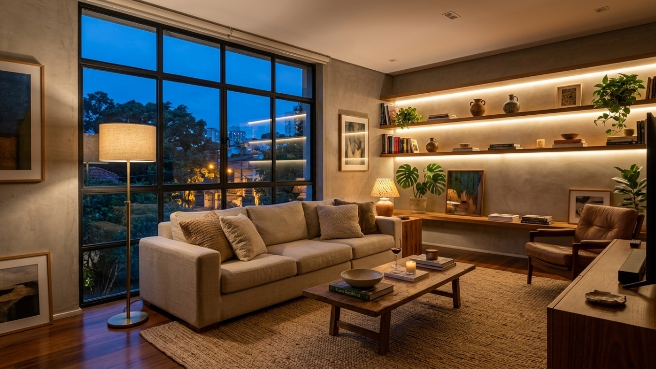 Iluminação acolhedora pode ser implementada com mudanças simples e acessíveis. Pequenos ajustes já transformam o ambiente em um espaço mais relaxante.