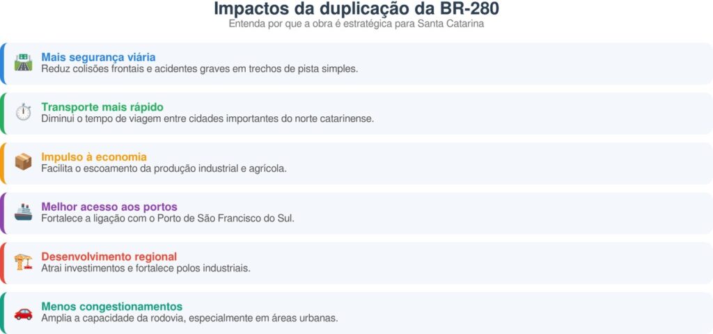 Com essa entrega parcial, houve a estadualização de parte da BR-280, já duplicada. Mesmo limitada, a melhoria já trouxe impacto positivo no tráfego local.