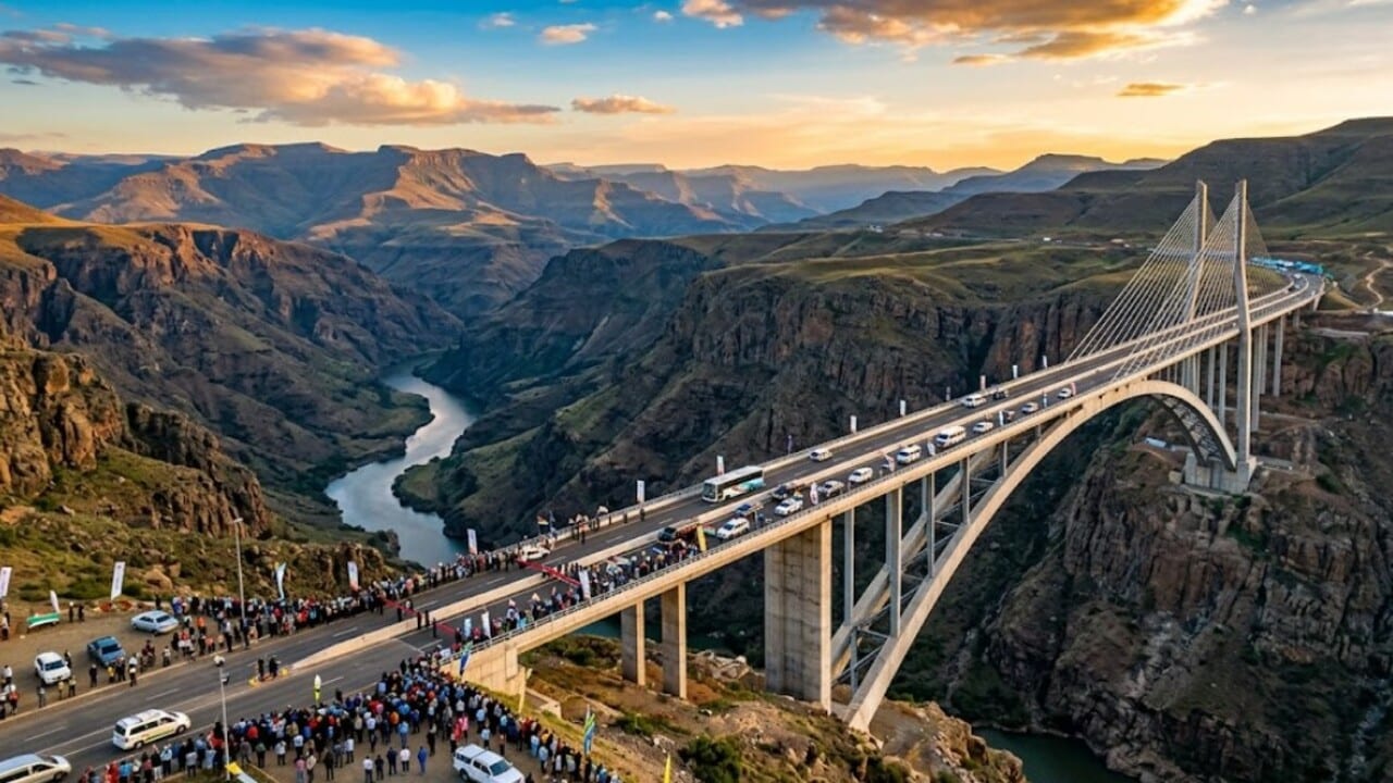 A África do Sul e o Lesoto vão inaugurar esta semana a Ponte Senqu, uma megaestrutura de R$ 725,9 milhões que integra o ambicioso Projeto Hídrico das Terras Altas do Lesoto e promete fortalecer a conectividade regional com a megaponte.