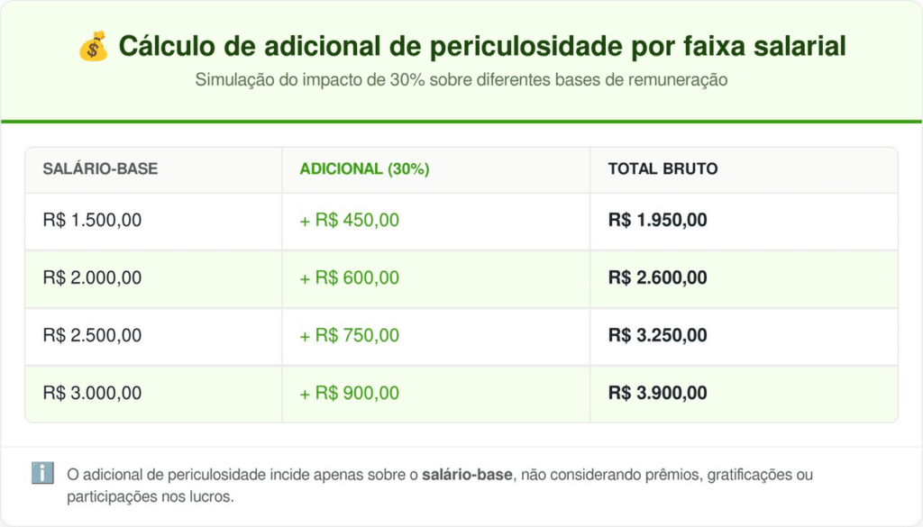 O benefício não é um valor fixo, mas sim um percentual de 30% aplicado diretamente sobre o salário contratual registrado na carteira de trabalho. Para um profissional que recebe o piso de R$ 1.500,00, por exemplo, o acréscimo será de exatamente R$ 450,00 mensais.