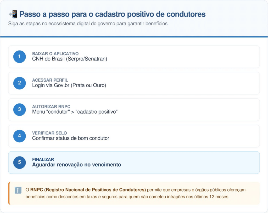 Uma das grandes novidades vigentes em 2026 é a renovação automática via RNPC (Registro Nacional Positivo de Condutores). Esse benefício é destinado a quem possui histórico limpo, ou seja, não cometeu infrações de trânsito nos últimos 12 meses e está cadastrado no sistema.