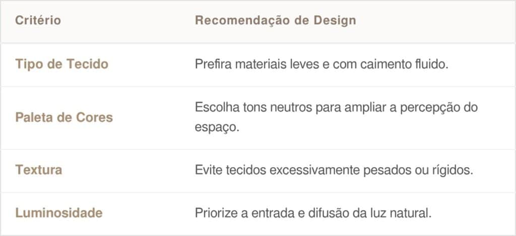 Confira abaixo os principais critérios para escolher o tecido ideal e como aplicá-los ao seu projeto: