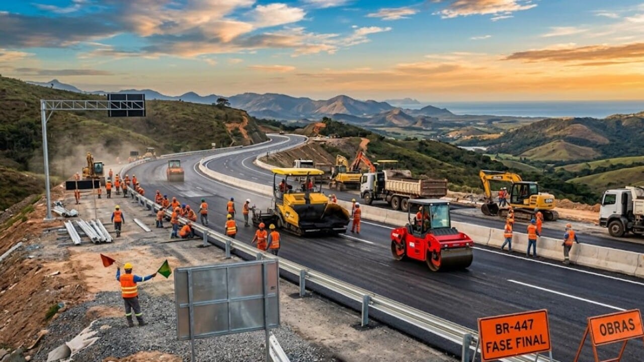 As obras de implantação da BR-447/ES avançam para a fase final e já atingem cerca de 90% de execução física, segundo o DNIT. O projeto promete transformar a logística do Espírito Santo com entrega prevista para dezembro de 2026.