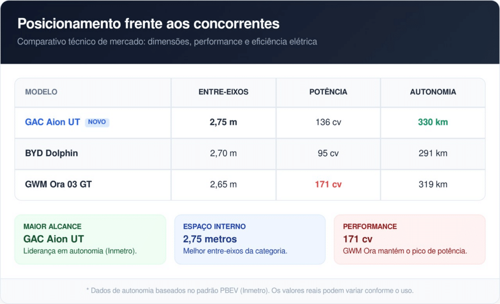 A chegada deste veículo mira diretamente o sucesso de vendas do BYD Dolphin e o estilo do GWM Ora 03. A estratégia da GAC é oferecer mais espaço e tecnologia embarcada por um preço competitivo, tentando atrair o consumidor que busca um carro principal para a família.