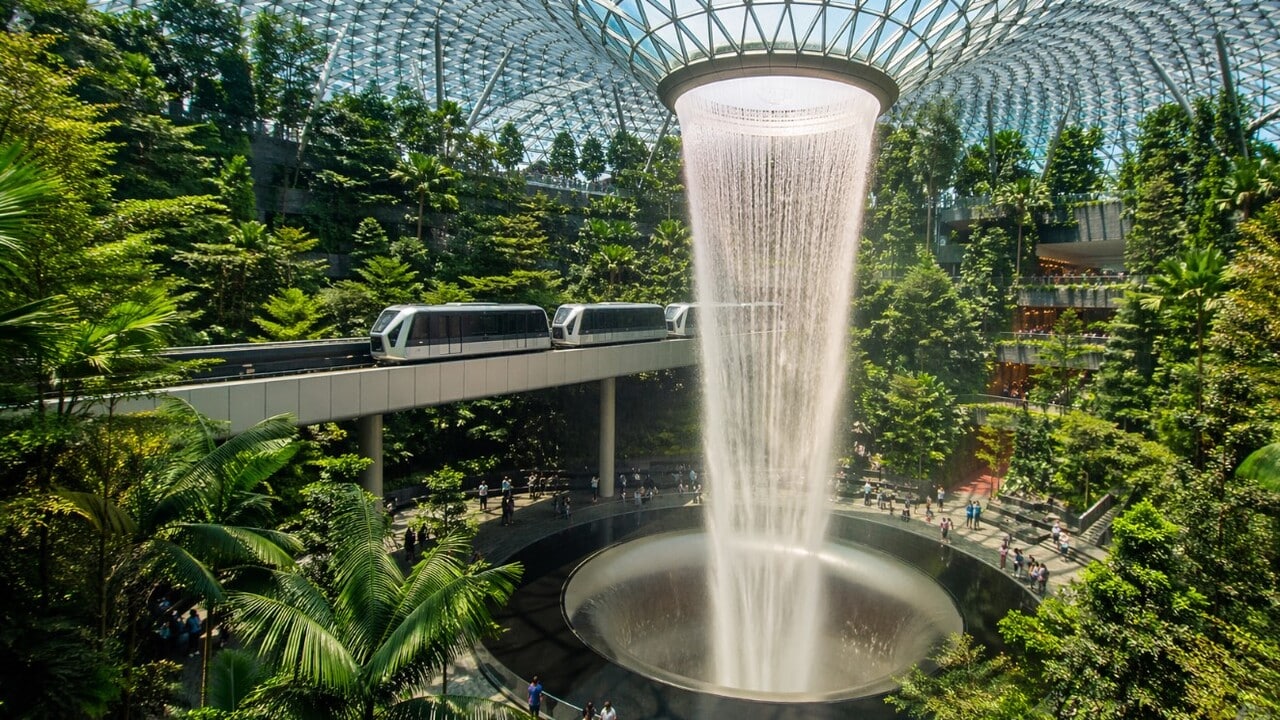 O Jewel Changi Airport foi projetado para ir além da função tradicional de embarque e desembarque. O espaço combina arquitetura futurista com atrações que transformam o local em um verdadeiro destino turístico.