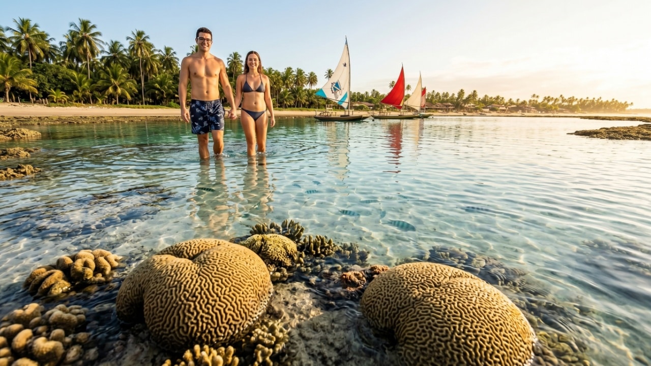 São Miguel dos Milagres é um dos raros destinos onde a natureza dita as regras do roteiro. As piscinas aparecem na lua certa, na maré certa, para quem teve o cuidado de planejar. O peixe-boi emerge se quiser. A areia esvazia durante dias de semana e enche só nos feriados.