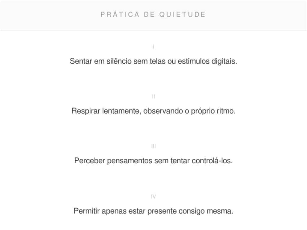 Ao retirar estímulos digitais por alguns minutos, o sistema nervoso tem espaço para desacelerar e reorganizar o fluxo emocional do dia.