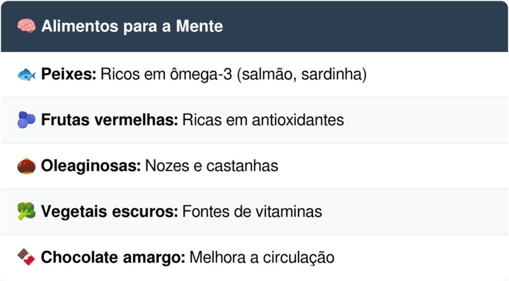 A nutrição tem papel fundamental na saúde cognitiva. Alguns alimentos atuam como verdadeiros “cosméticos cerebrais”, protegendo neurônios e melhorando a performance mental.