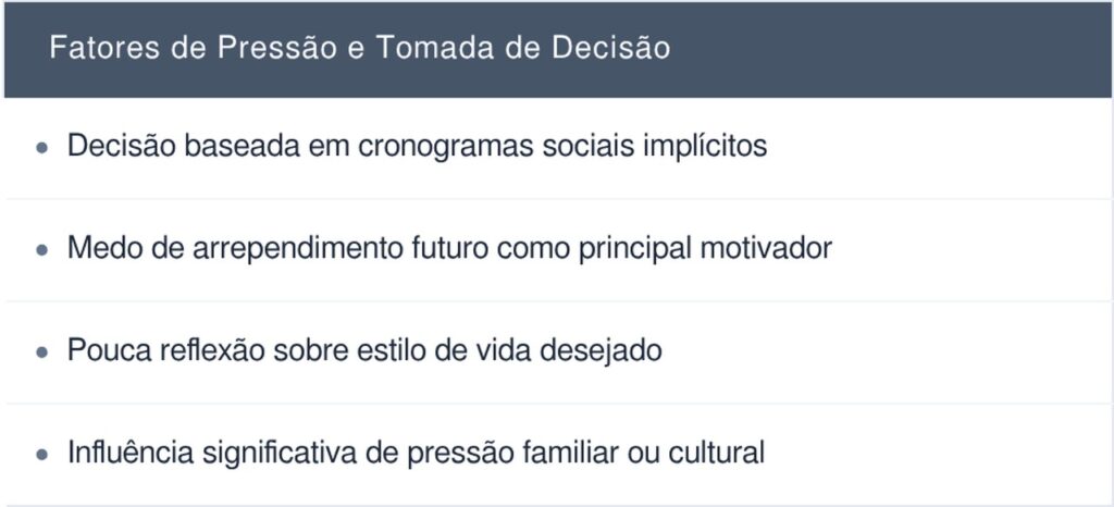 Nesse cenário, a autonomia de escolha se fortalece quando baseada em informação ampla e reflexão pessoal, e não apenas em normas sociais ou expectativas de arrependimento futuro. A decisão consciente, seja qual for, tende a estar mais alinhada com estabilidade emocional e satisfação de longo prazo quando parte de um processo de autoconhecimento genuíno.