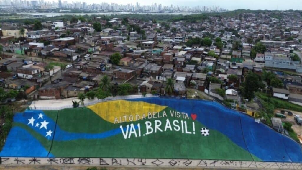 Além da engenharia, o local recebeu uma intervenção artística com a frase “VAI, BRASIL!”, em referência à Copa do Mundo Feminina de 2027. A pintura transforma a encosta em um ponto cultural, unindo arte urbana e infraestrutura em um novo cartão-postal da comunidade.