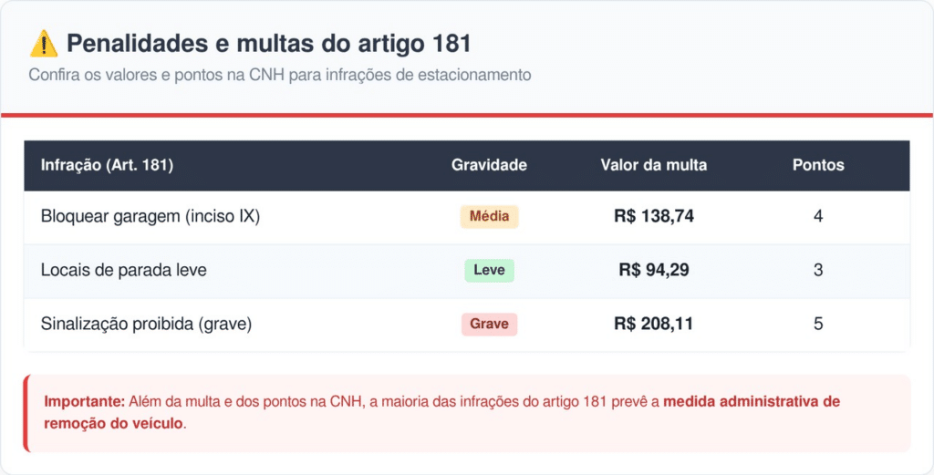 Além da punição financeira, o veículo está sujeito à medida administrativa de remoção por guincho. O custo do pátio e as diárias de custódia elevam consideravelmente o prejuízo final do condutor.