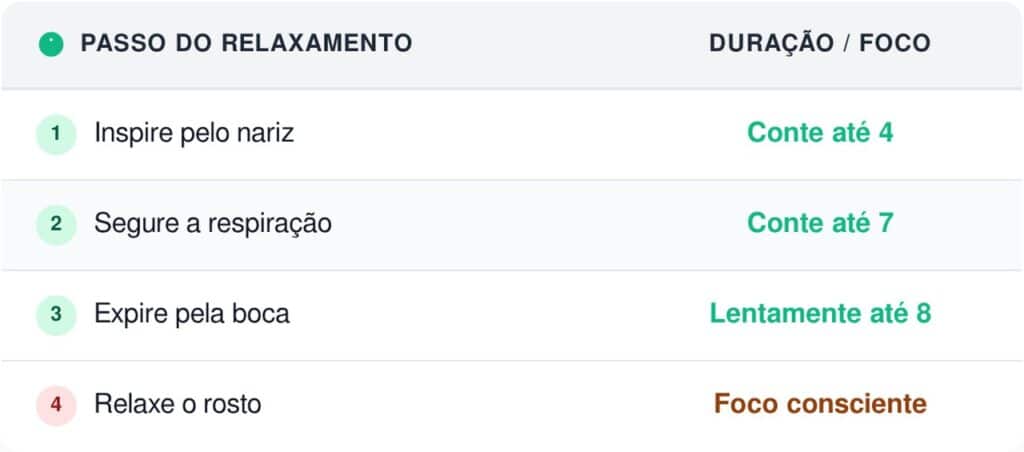 Como o exercício de respiração 4-7-8 relaxa o rosto e a tensão invisível?
