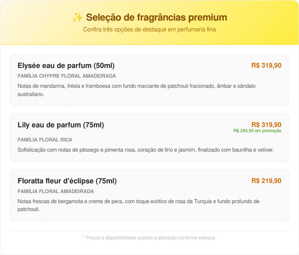 Com variedade de composições, boa durabilidade e desenvolvimento olfativo refinado, esses perfumes se consolidam como escolha inteligente para quem busca qualidade, estilo e personalidade no cuidado diário.