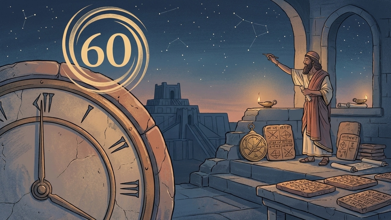 A explicação mais aceita está no sistema sexagesimal, usado por civilizações da Mesopotâmia e especialmente associado aos babilônios. Em vez de organizar contas em base 10, como fazemos hoje na maior parte das situações, eles trabalhavam com base 60, algo muito útil para dividir valores em várias partes exatas.