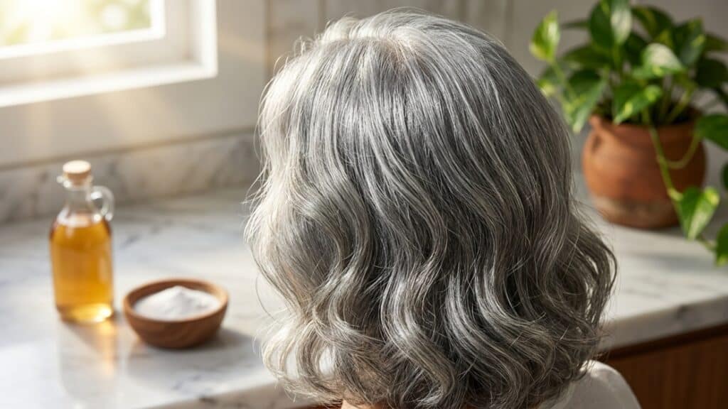 Diferente do bicarbonato, o vinagre de maçã tem um pH ácido, muito próximo ao índice natural de um couro cabeludo saudável. Ao ser aplicado nos cabelos grisalhos, ele atua fechando as cutículas que foram abertas, selando a umidade dentro da fibra e refletindo a luz com muito mais intensidade.