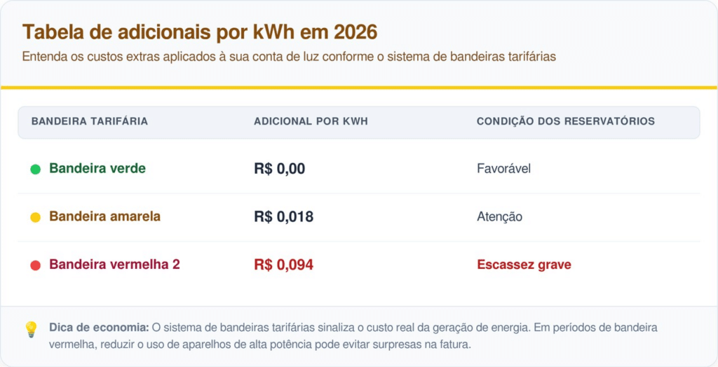 O sistema de bandeiras da ANEEL é o principal regulador do preço final da energia elétrica utilizada para carregar o veículo em casa. Em abril de 2026, com a vigência da bandeira verde, o consumidor não paga adicionais, mantendo o custo do kWh em patamares favoráveis à mobilidade elétrica.