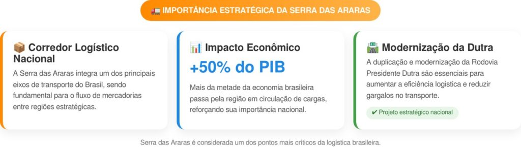 A obra na Serra das Araras representa uma transformação profunda em um dos trechos mais perigosos da BR-116, que conecta Rio de Janeiro e São Paulo. O objetivo é ampliar a capacidade e aumentar a segurança de uma rodovia estratégica para o país.