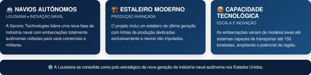 Na Louisiana, a empresa Saronic Technologies está impulsionando uma nova fase da indústria naval com embarcações autônomas voltadas para usos comerciais e militares. Veja os impactos na produção: