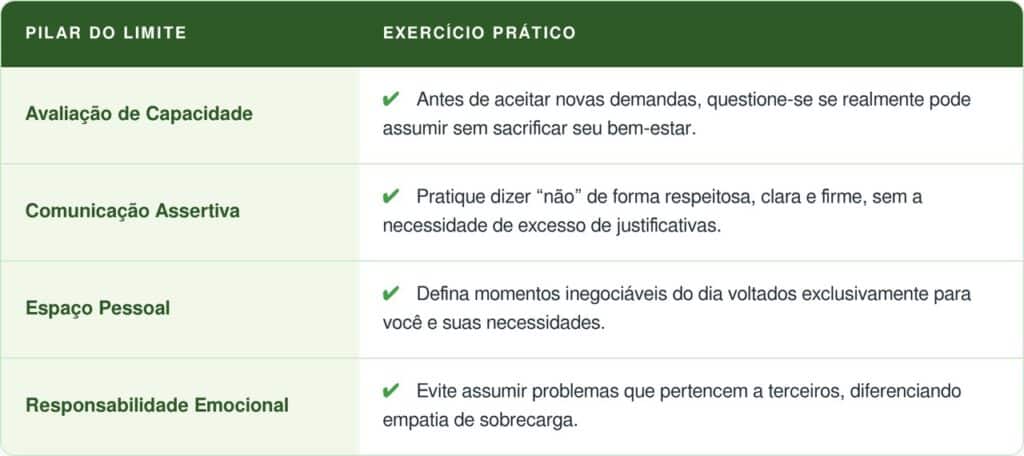 Estabelecer limites é essencial para preservar a saúde mental e reduzir a sobrecarga emocional. Na prática, isso significa reconhecer até onde você pode ir sem se prejudicar.