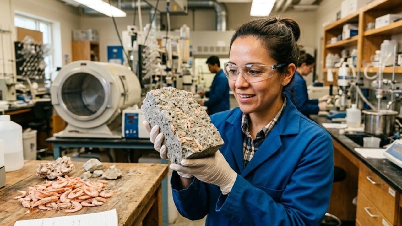 Um novo “concreto limpo” desenvolvido com resíduo de casca de camarão promete revolucionar a construção sustentável ao unir desempenho mecânico, reaproveitamento de resíduos e ação antibacteriana.