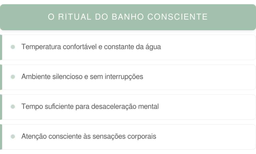 Em dias de alta pressão emocional, poucas coisas são tão restauradoras quanto um banho quente, funcionando como um ritual de desligamento mental e relaxamento profundo. A introdução está bem conectada ao conteúdo, mas pode reforçar o conceito de “terapia do banho” como estratégia prática de regulação emocional.