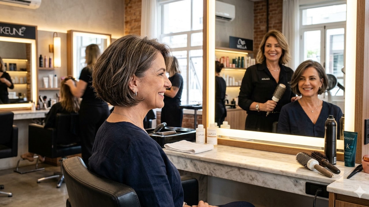 Entre os principais ganhos estão o efeito rejuvenescedor imediato, a versatilidade no styling e a sensação de cabelo mais cheio e saudável, tudo isso em um corte prático e moderno que funciona muito bem para mulheres maduras.