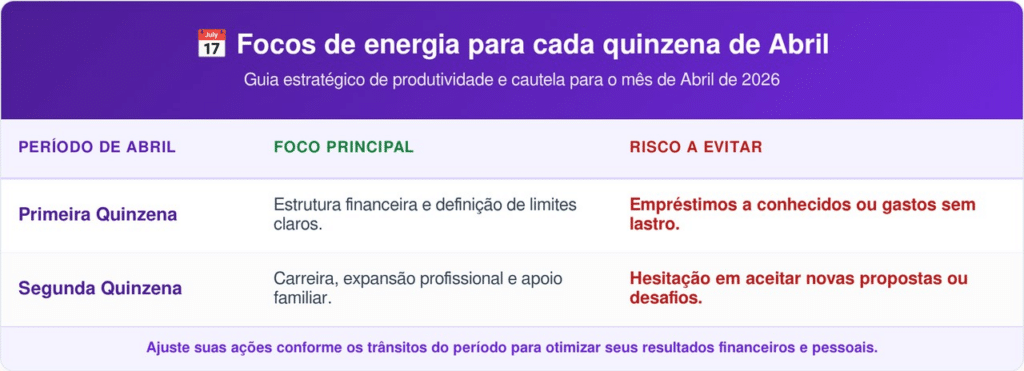O signo de Virgem atravessa um período de ritmo acelerado ao longo de abril de 2026, exigindo organização para evitar desequilíbrios financeiros. As influências astrológicas do mês concentram-se fortemente na estrutura material, deixando questões afetivas em segundo plano.