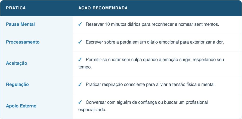 Mesmo com pouco tempo, é possível iniciar o processamento emocional de forma gradual. Na prática da saúde mental, pequenas ações consistentes ajudam a desbloquear emoções e reduzir a sobrecarga psicológica.