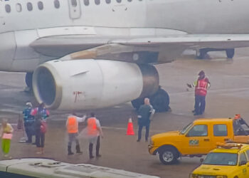 Um Airbus A319 da Latam apresentou problema, incluindo estouro de pneu, ao pousar no Aeroporto Santos Dumont, no Rio de...